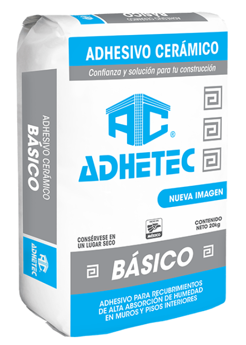 El ADHESIVO CERÁMICO BÁSICO, se emplea como adhesivo para recubrimientos de alta absorción de humedad en muros y pisos interiores.