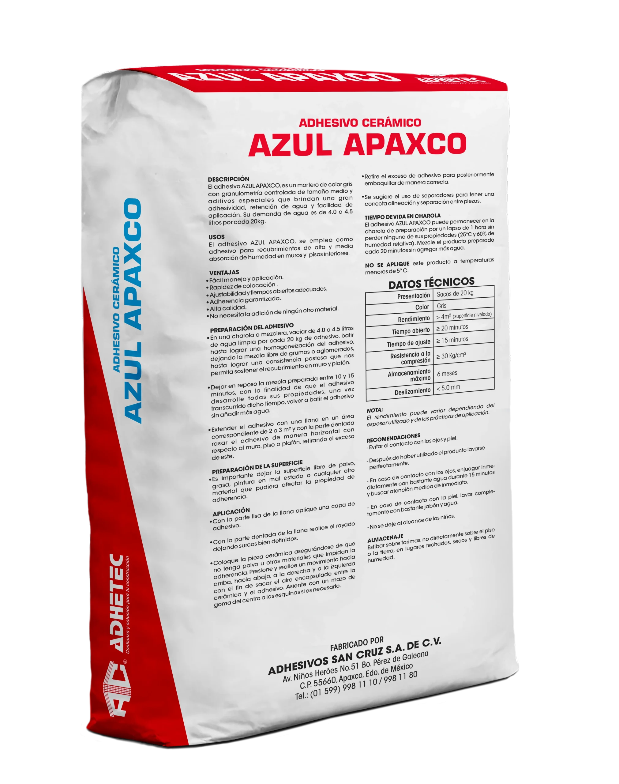 | Presentación | Sacos de 20 kg |
