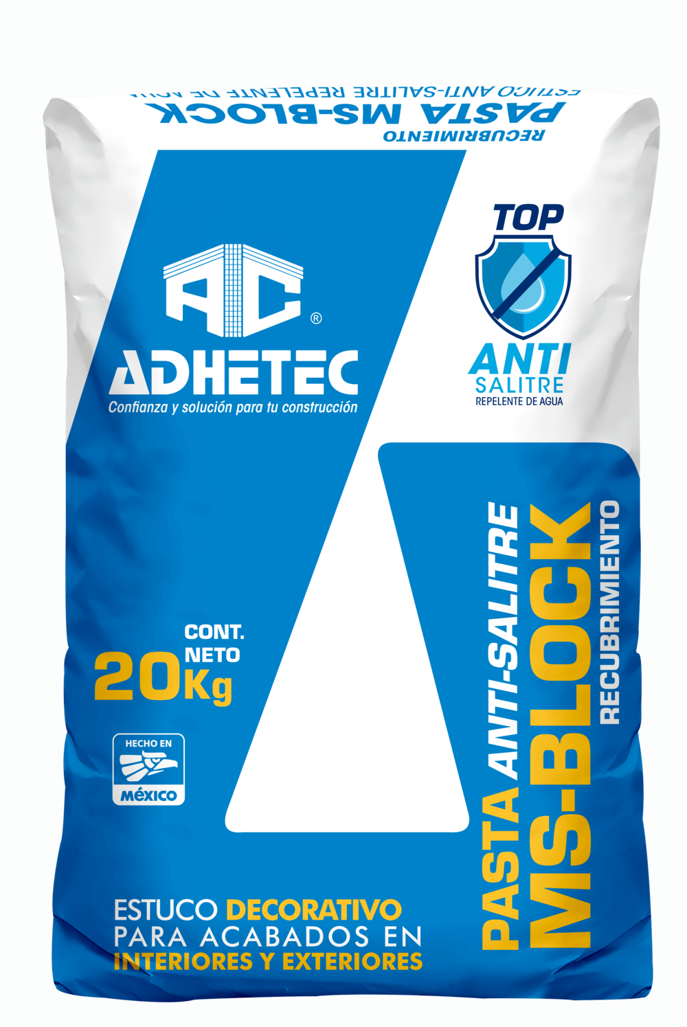 Estuco de alto desempeño formulado con cemento Portland, agregados minerales selectos y aditivos químicos hidrofóbicos que protegen los muros contra la aparición de salitre.